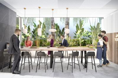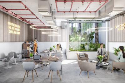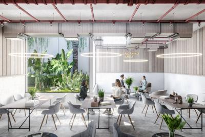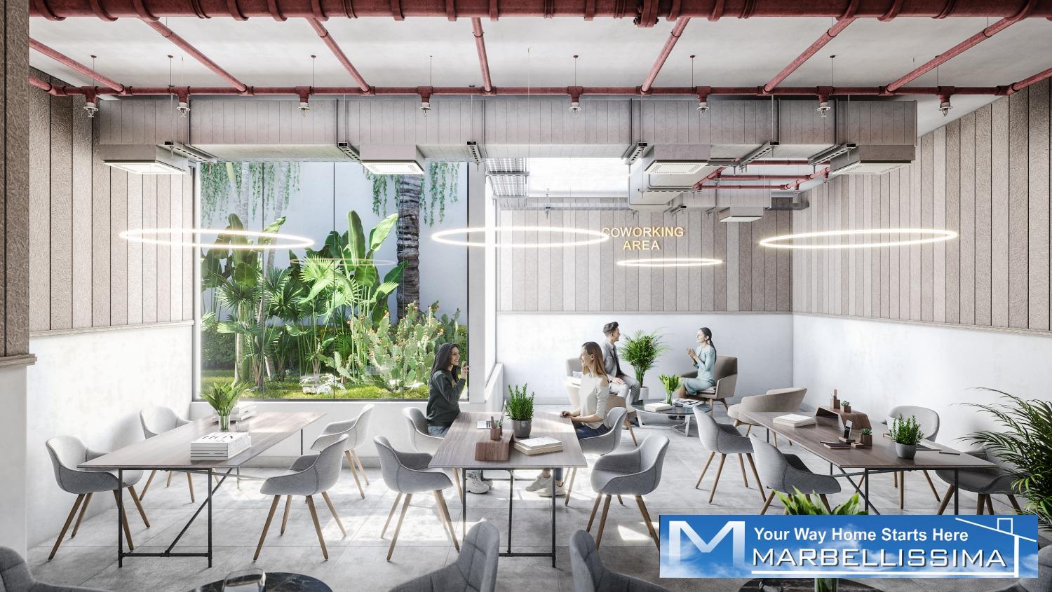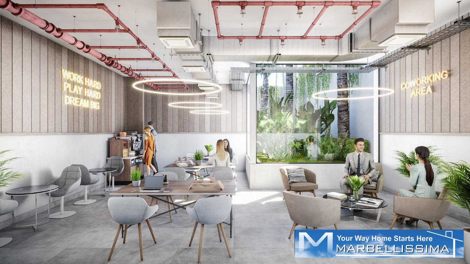 » Espace de coworking avec connexion Internet, murs recouverts de matériaux insonorisants et système d’éclairage spécialisé pour offrir un espace de travail détendu.