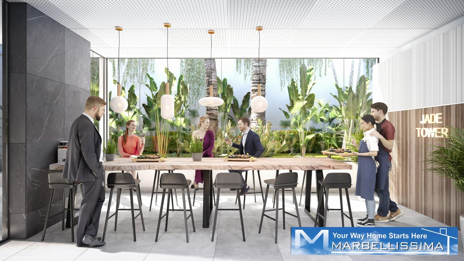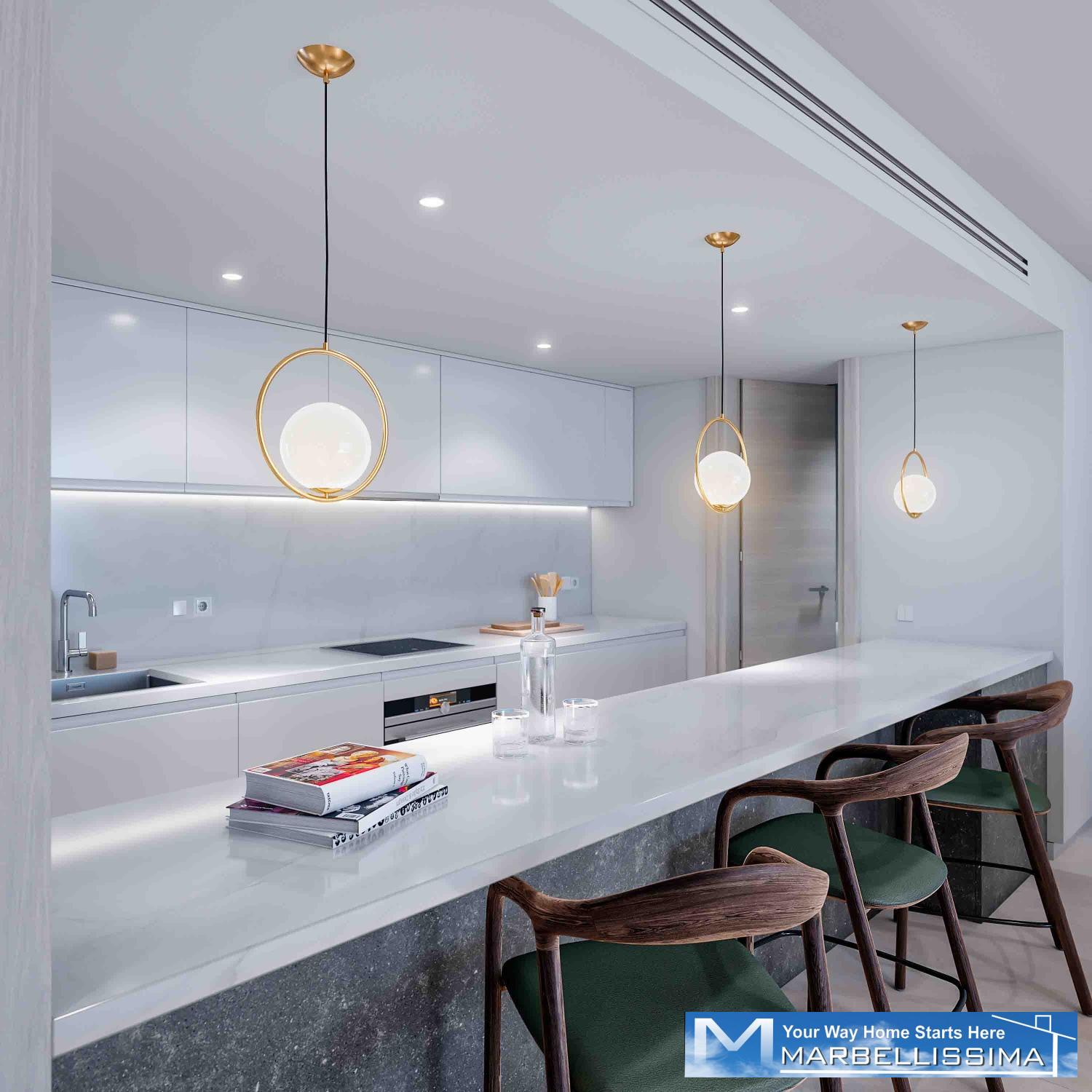 Nouveau développement avec 116 maisons au design moderne avec beaucoup de lumière naturelle. Une sélection d’appartements de 1, 2 et 3 chambres, avec concept d’espace ouvert, terrasses de bonnes tailles pour profiter pleinement du climat méditerranéen et du style de vie, cuisine ouverte avec appareils électroménagers complets, évier en acier inoxydable sous le plan de travail et robinets Franke ou similaires, plaque à induction sur l’îlot avec filtre à charbon intégré, hotte aspirante avec prise dans l’îlot, Four électrique et micro-ondes en colonne, lave-vaisselle et réfrigérateur et lave-linge intégrés dans la buanderie avec fonction de séchage. Parkings avec pré-installation pour chargeur de voiture électrique, local de stockage.