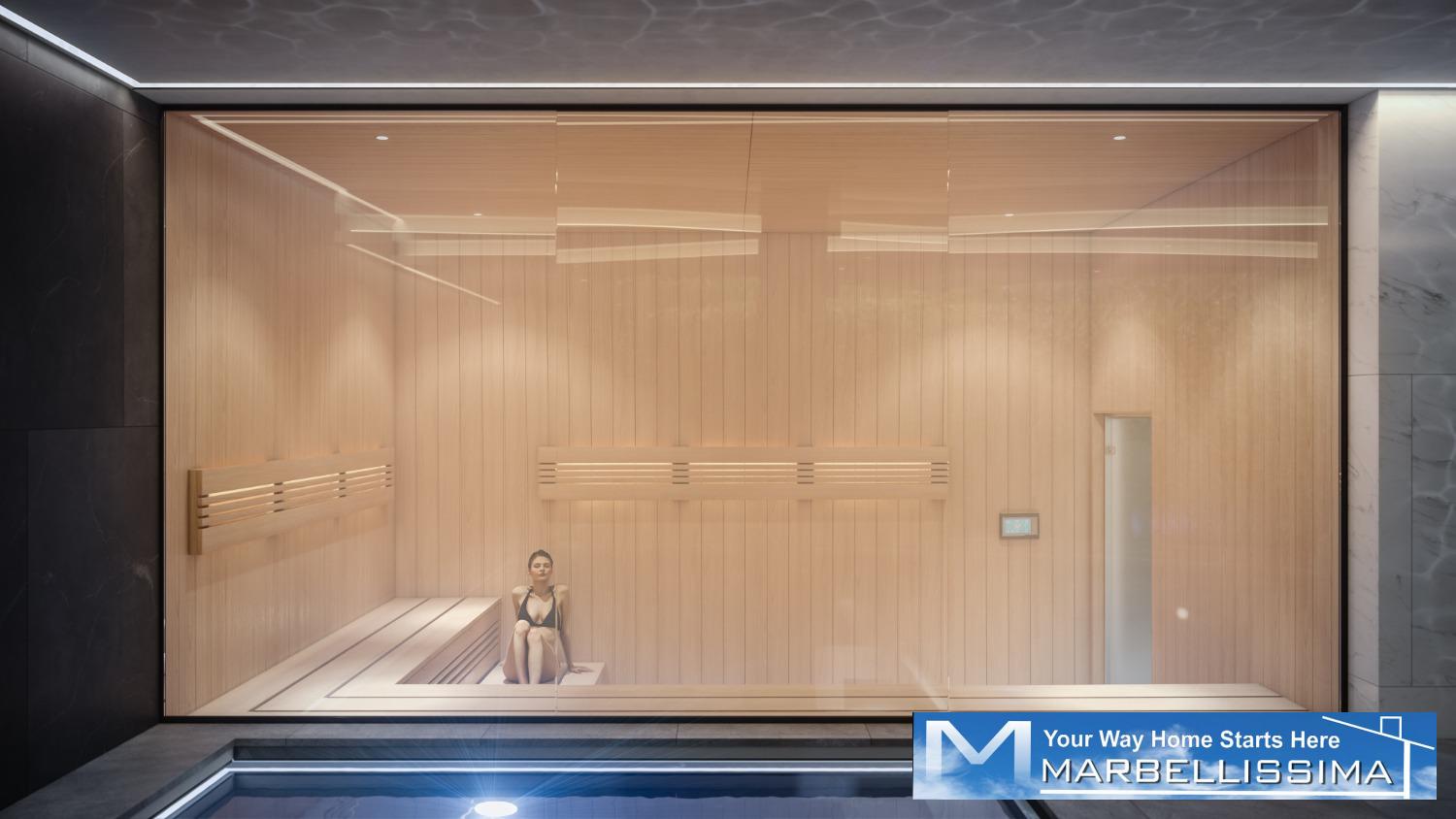 » Thérapie par l’eau chaude-froide de style romain, sauna, jacuzzi, bain à remous, zone de détente et piscine chauffée.