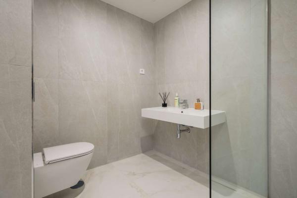 Distribuzione: ◊ Atrio d'ingresso 2,02 m2 ◊ Salotto-sala da pranzo-cucina 42,62 m2. ◊ Camera Numero 3: 12,61 m2. ◊ Bagno numero 3 (accesso alla terrazza principale): 11,22 m2. ◊ Corridoio (verso camere da letto e bagni) 7,15 m2. ◊ Bagno numero 2 (da condiviso): 4,74 m2. ◊ Camera da letto numero 1 (accesso alla terrazza principale): 12,61 m2. ◊ Bagno numero 1: 5,98 m2. ◊ Camera da letto numero 2 (accesso a una propria terrazza): 11,08 m2. ◊ Terrazza principale di 65,89 m2. ◊ Terrazza sul tetto di 93,11 m2 (con idromassaggio e splendide viste sul mare). ◊ Superficie totale costruita di 260,67 m2.