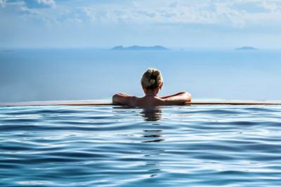 Modernt med havsutsikt. Fönster från golv till tak och gångavstånd till klubbhusen!